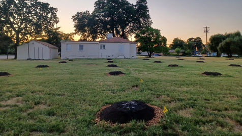 Our team of volunteers created a 19 mound garden over the span of 10,000 sq. ft. The pumpkin patch has 16 mounds of 7 varieties of pumpkins. The other 3 mounds contain cantaloupe and watermelon. Each mound also has corn growing to help us find the mounds once the pumpkin vines start to branch out! A water conserving drip system is set in place to water only the mounds through emitters.